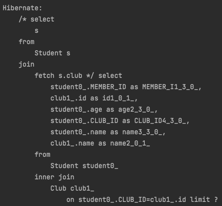 그리고 이와 연관된 Student Entity를 조회하는 쿼리가 한 번 더 나간다.