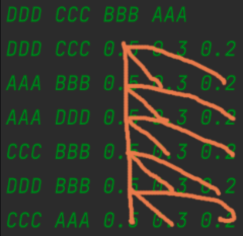 위와 같은 입력이 있을 때 DDD가 이기고 다음 경기에서 AAA가 이길 확률은 몇 %일까?