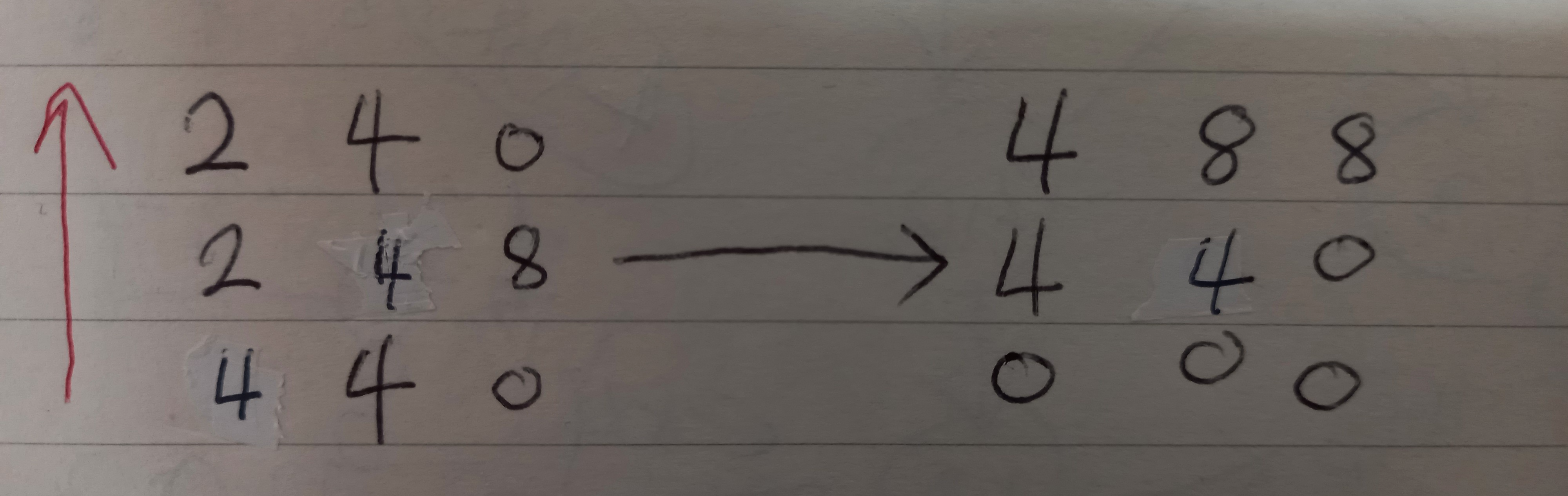 블록을 움직일 때 가장 먼저 고려했던 것은 '이동하는 방향으로 먼저 합친다'라는 조건이었다.