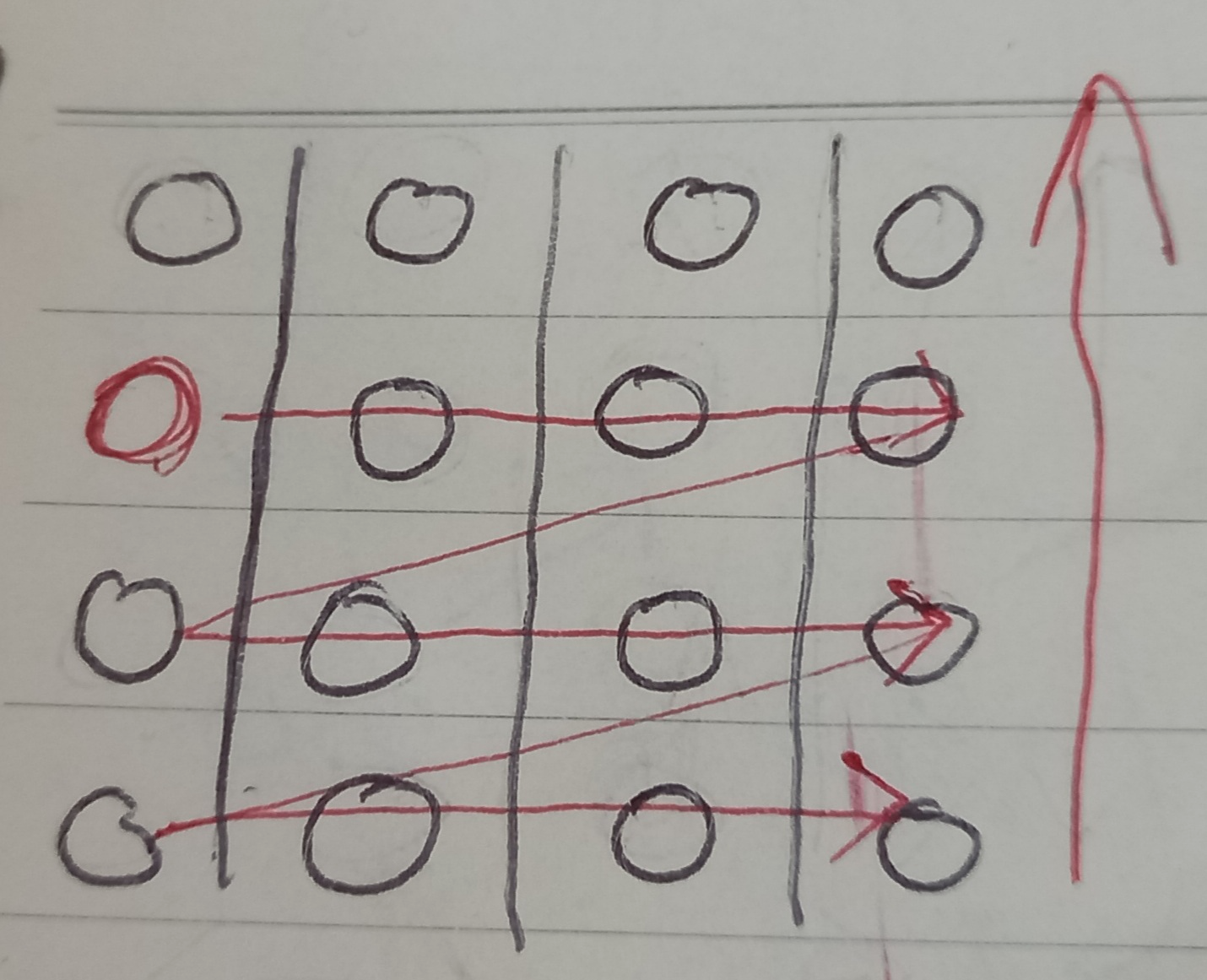 왼쪽으로 움직일 때는 2번째 열부터 시작하여 우측 방향