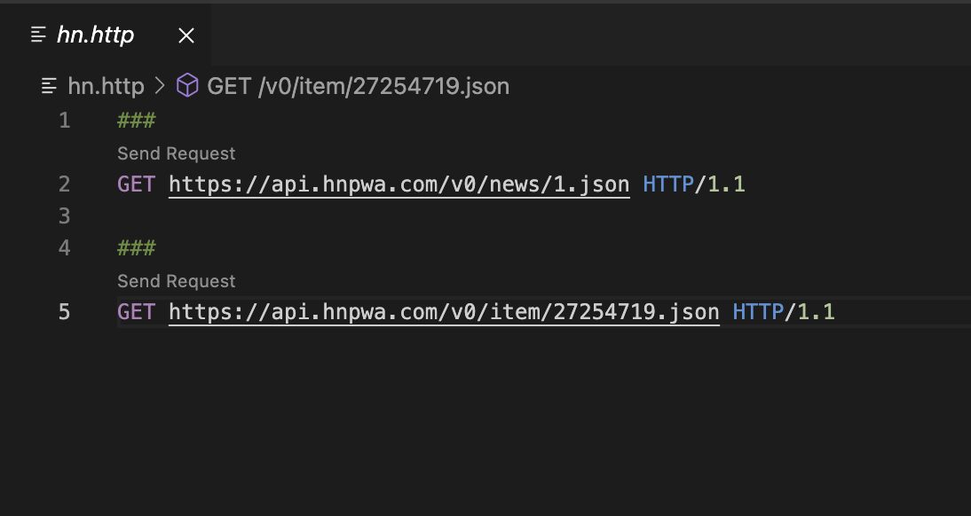 위와 같이 파일 작성 시 ### 아래에 send request 버튼이 생긴다.