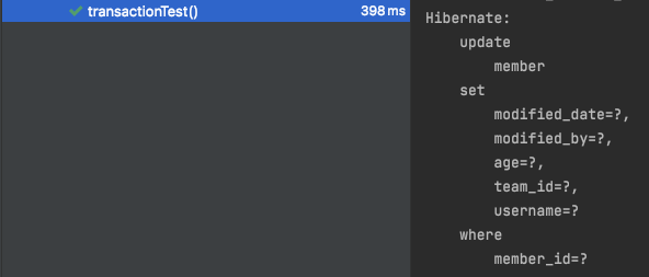 실행결과를 보면 변경감지에 의해 update 쿼리가 정상적으로 실행되었음을 알 수 있다.