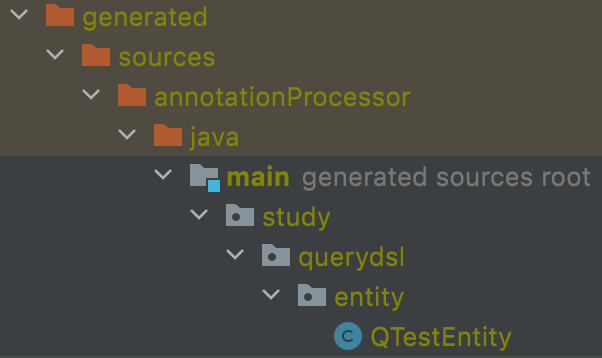 이제 프로젝트를 build하면 /build/generated 하위에 QTestEntity가 생성된다.