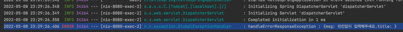 즉, error log를 찍고, API를 호출한 곳에 응답으로 ErrorMessage 객체를 반환하는 것이다.
