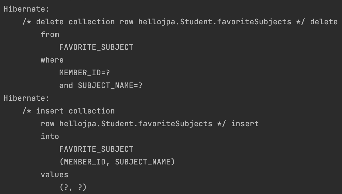 favoriteSubjects의 경우 Set 타입이고, addressHistory의 경우 List 타입이다.