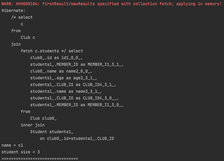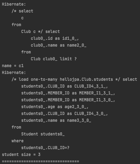 그리고 이와 연관된 Student Entity를 조회하는 쿼리가 한 번 더 나간다.