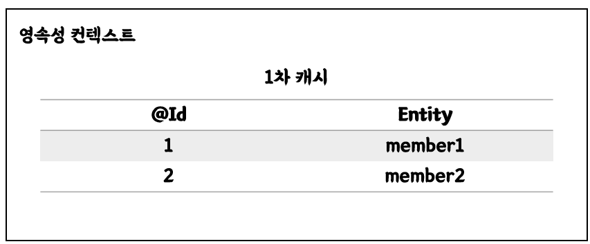 마치 map처럼 @Id 어노테이션이 붙은 필드(여기서는 Member의 Long id)가 key로 저장되고 Value로는 해당하는 Entity가 들어가게 된다.
