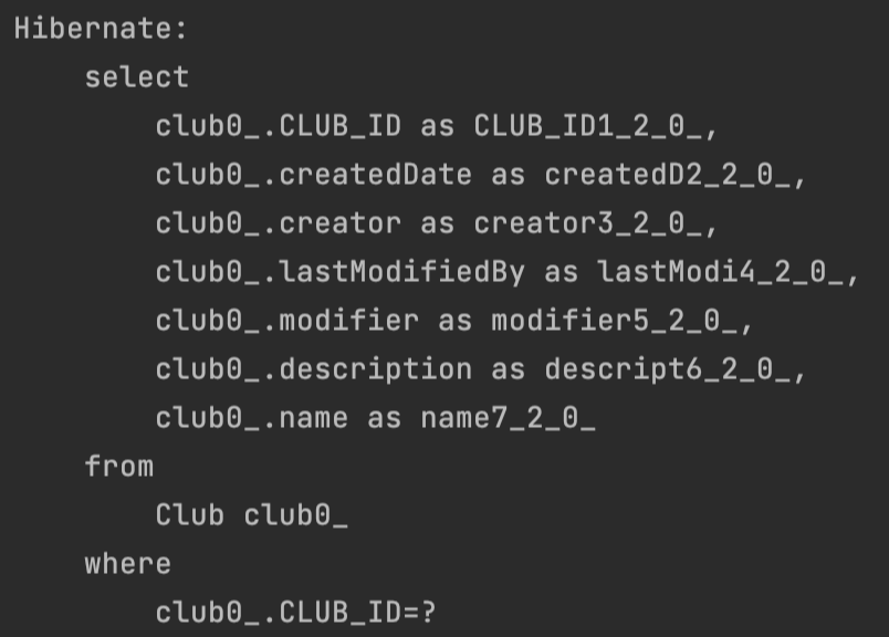 그래서 club.getName()을 호출한 시점에 select ... from Club 쿼리가 날아가는 것을 확인할 수 있다.